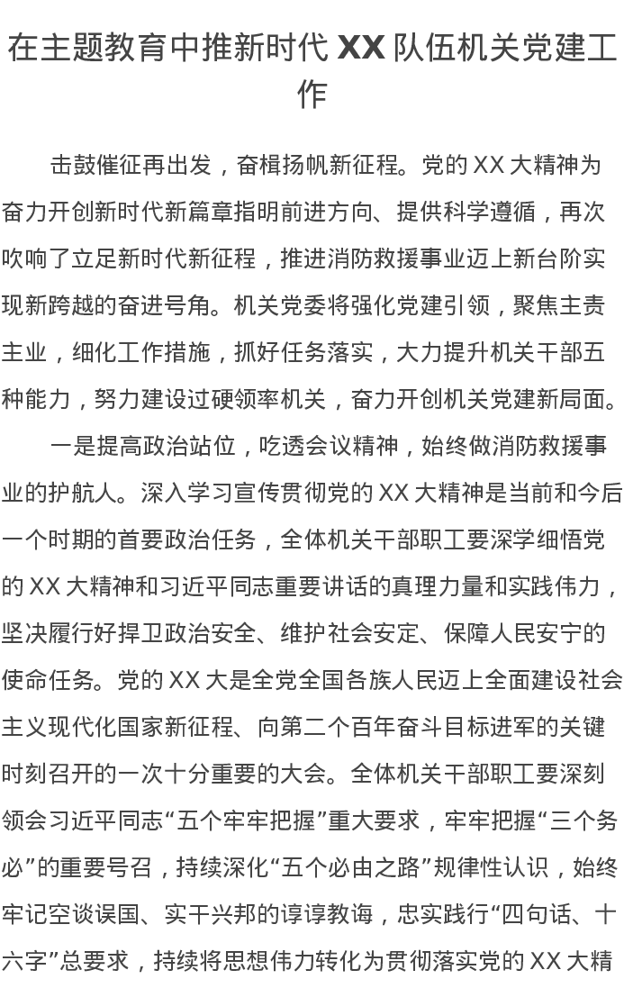 在主题教育中推新时代XX队伍机关党建工作(特色社会主义思想)
