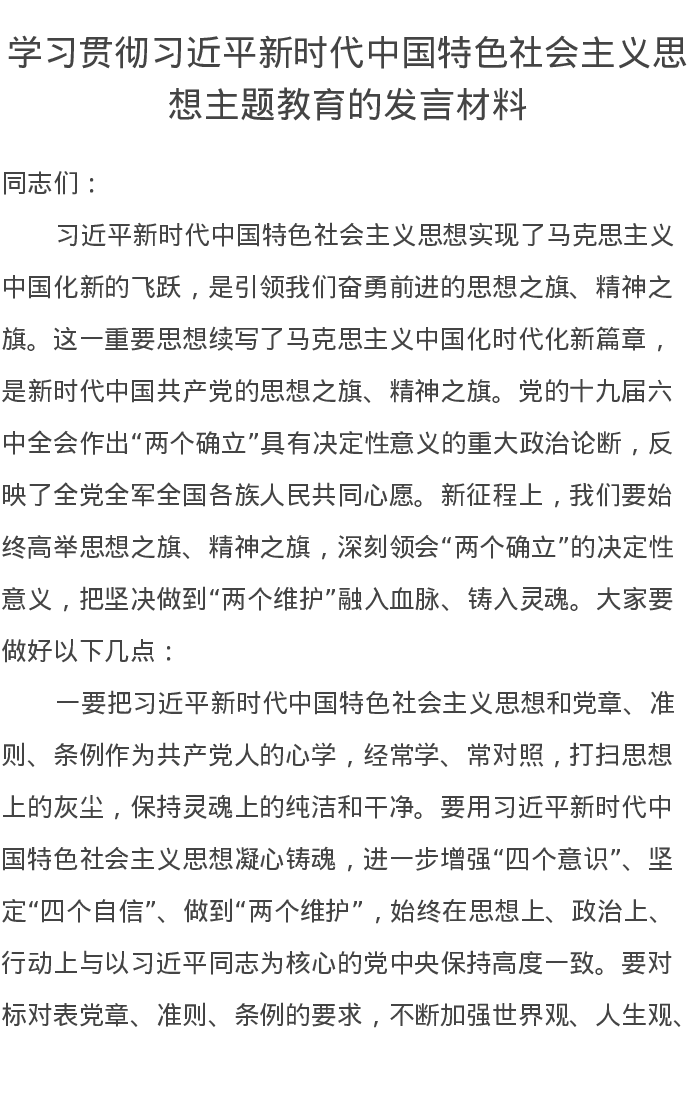 学习贯彻习近平新时代中国特色社会主义思想主题教育的发言材料