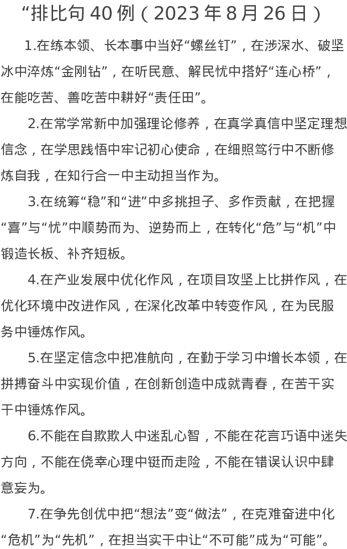 “排比句40例(2023年8月26日)