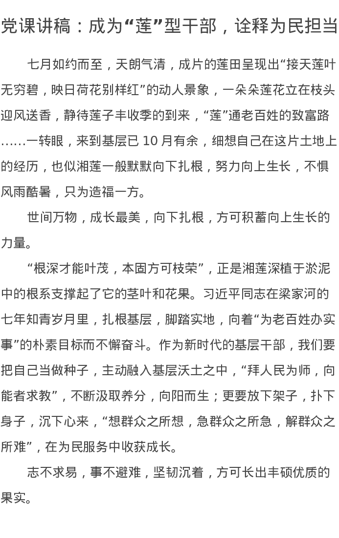 党课讲稿:成为“莲”型干部,诠释为民担当