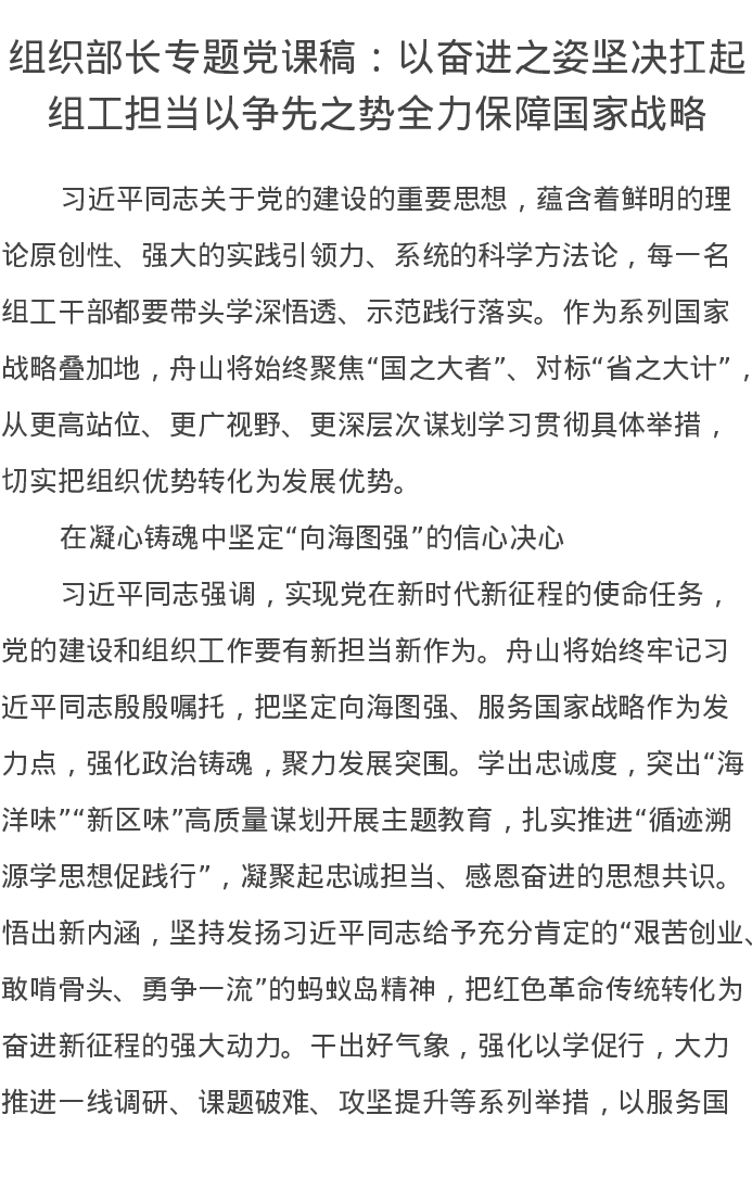 组织部长专题党课讲稿:以奋进之姿坚决扛起组工担当以争先之势全力保障国家战略