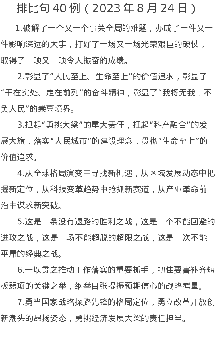 排比句40例(2023年8月24日)