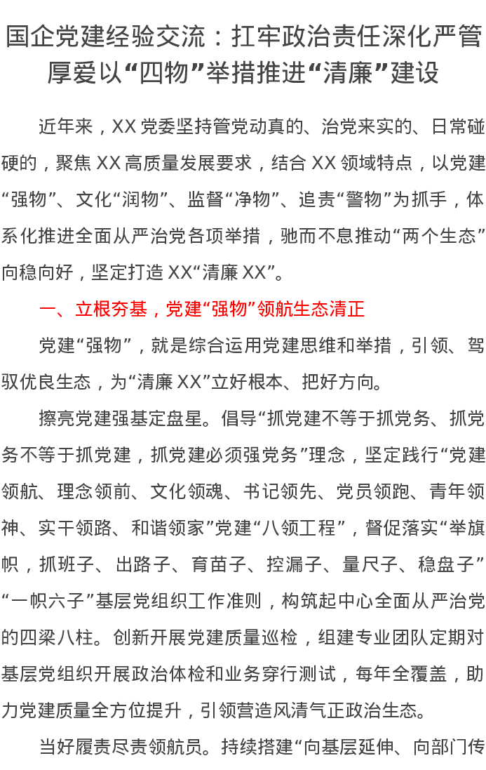 国企党建经验交流:扛牢政治责任深化严管厚爱以“四物”举措推进“清廉”建设