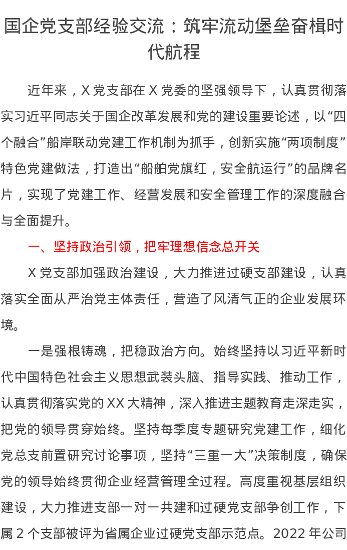 国企党支部经验交流:筑牢流动堡垒奋楫时代航程