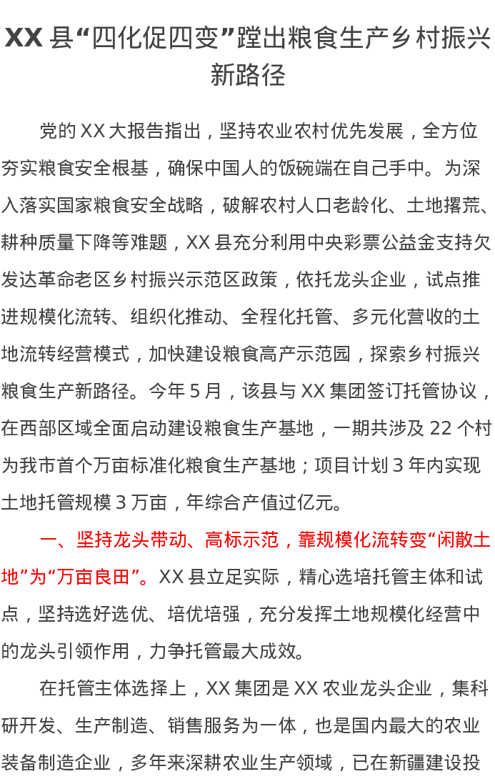 XX县“四化促四变”蹚出粮食生产乡村振兴新路径