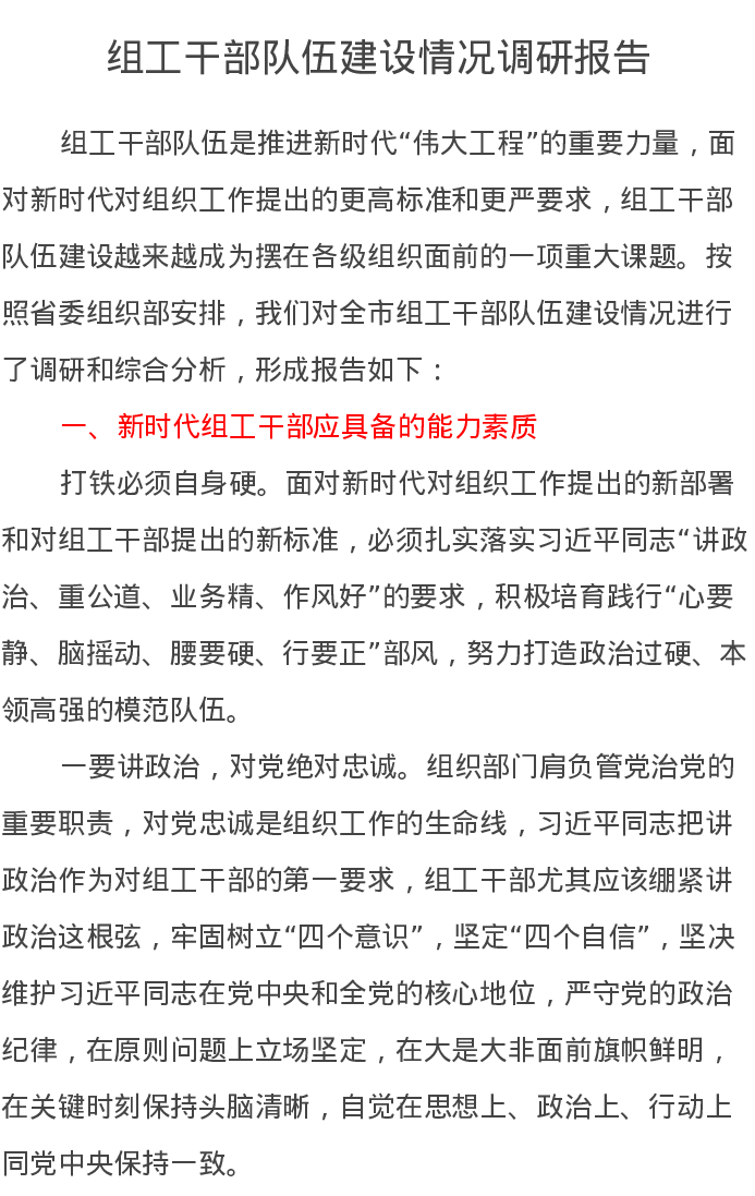 组工干部队伍建设情况调研报告