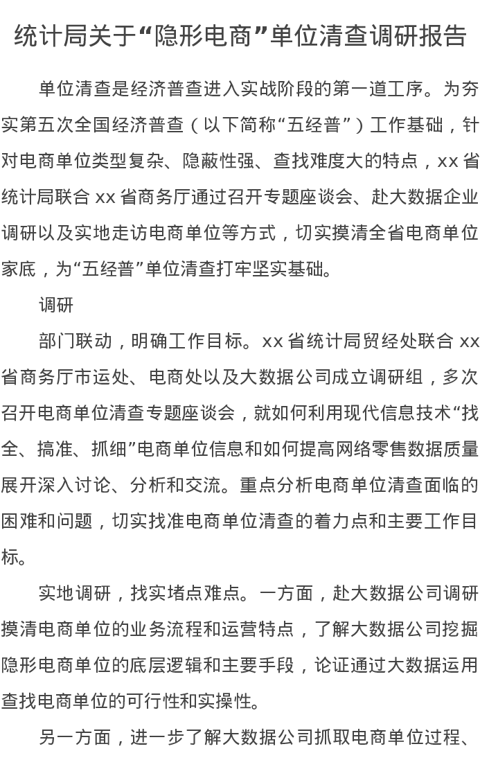 统计局关于“隐形电商”单位清查调研报告