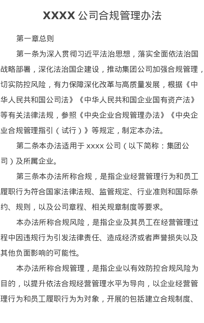 XXXX公司合规管理办法