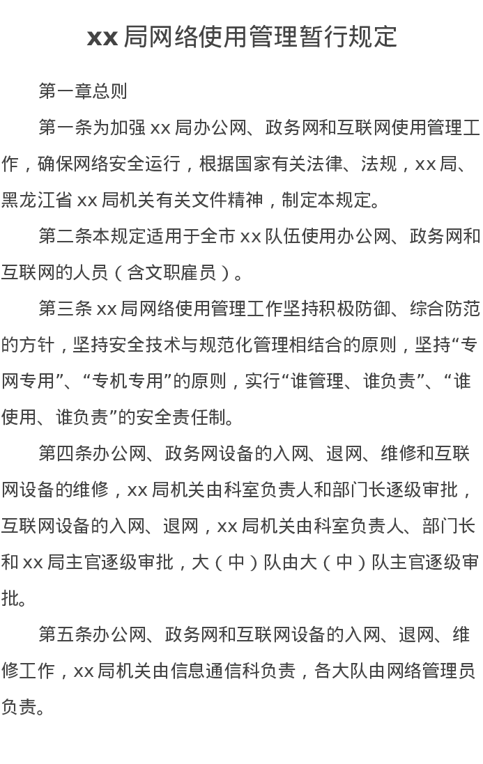 xx局网络使用管理暂行规定