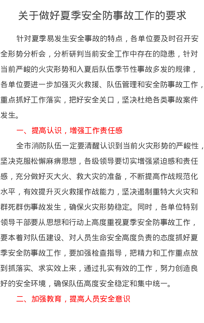 关于做好夏季安全防事故工作的要求