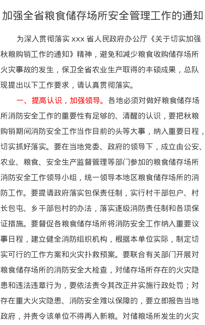 加强全省粮食储存场所安全管理工作的通知
