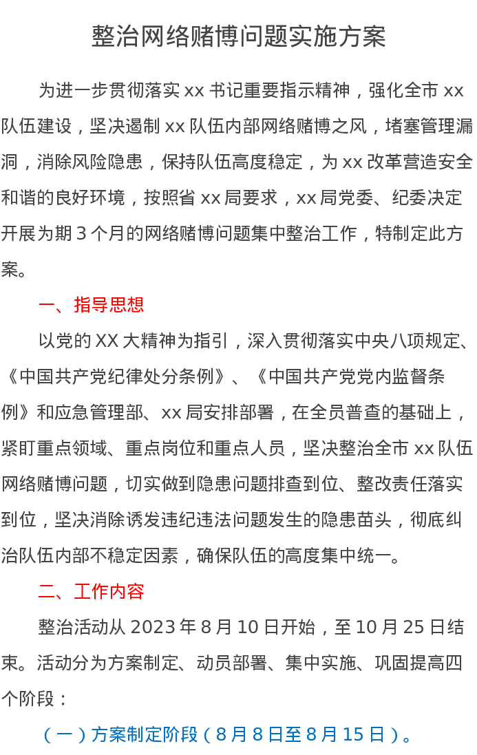 整治网络赌博问题实施方案