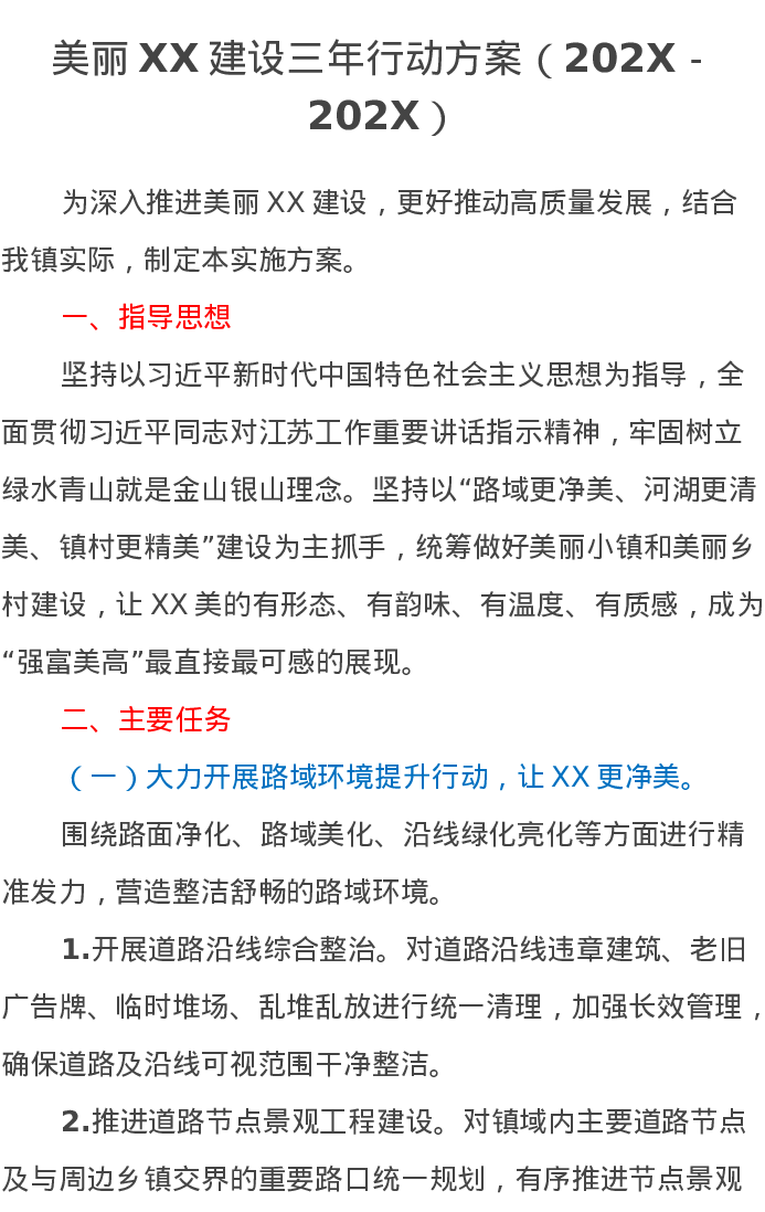 美丽XX建设三年行动方案(202X-202X)