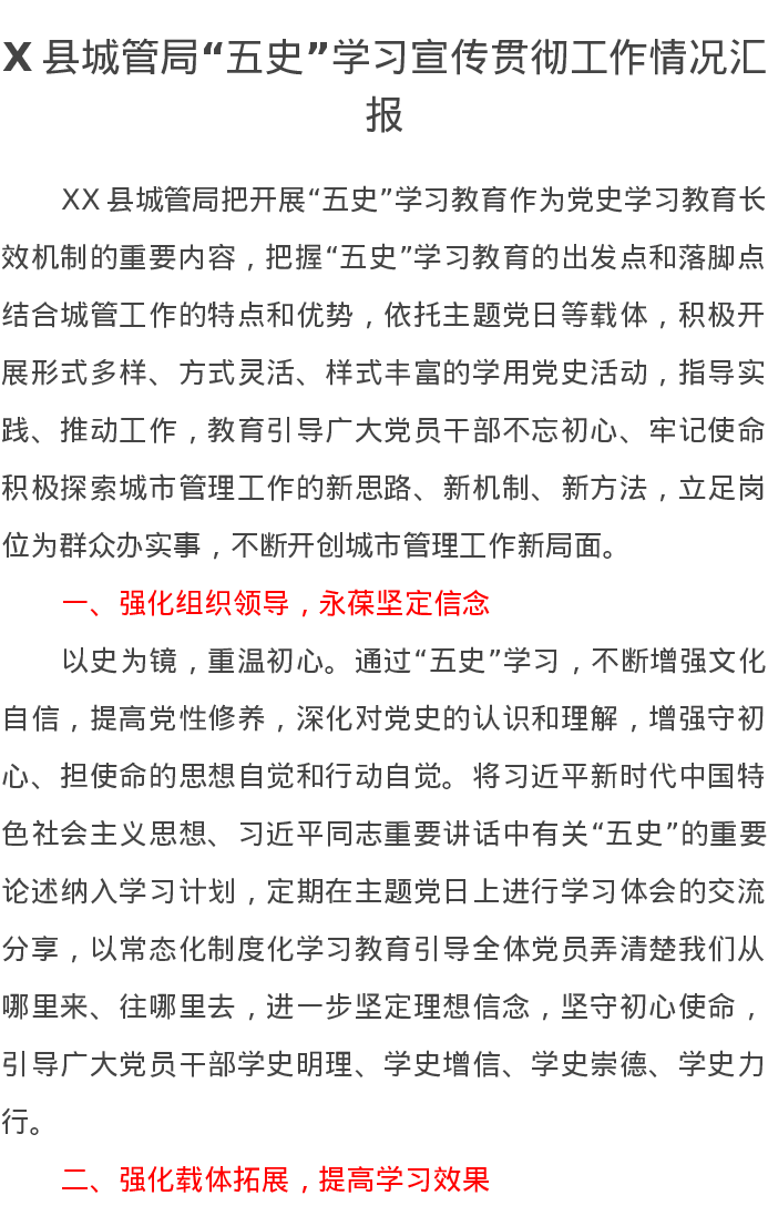 X县城管局“五史”学习宣传贯彻工作情况汇报