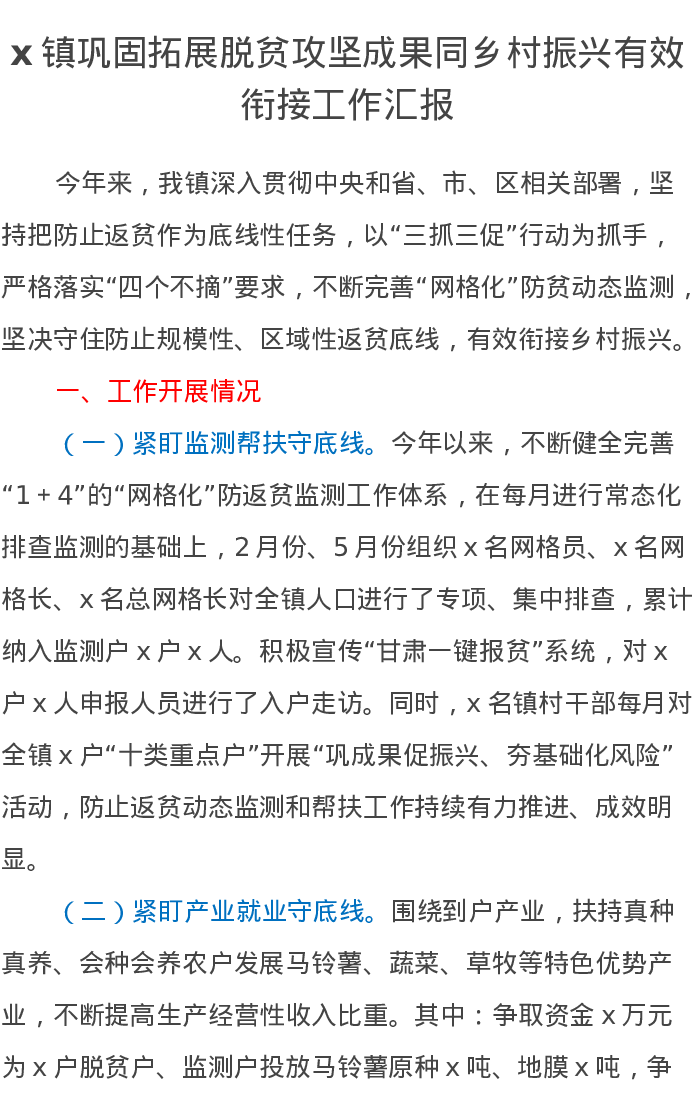 x镇巩固拓展脱贫攻坚成果同乡村振兴有效衔接工作汇报