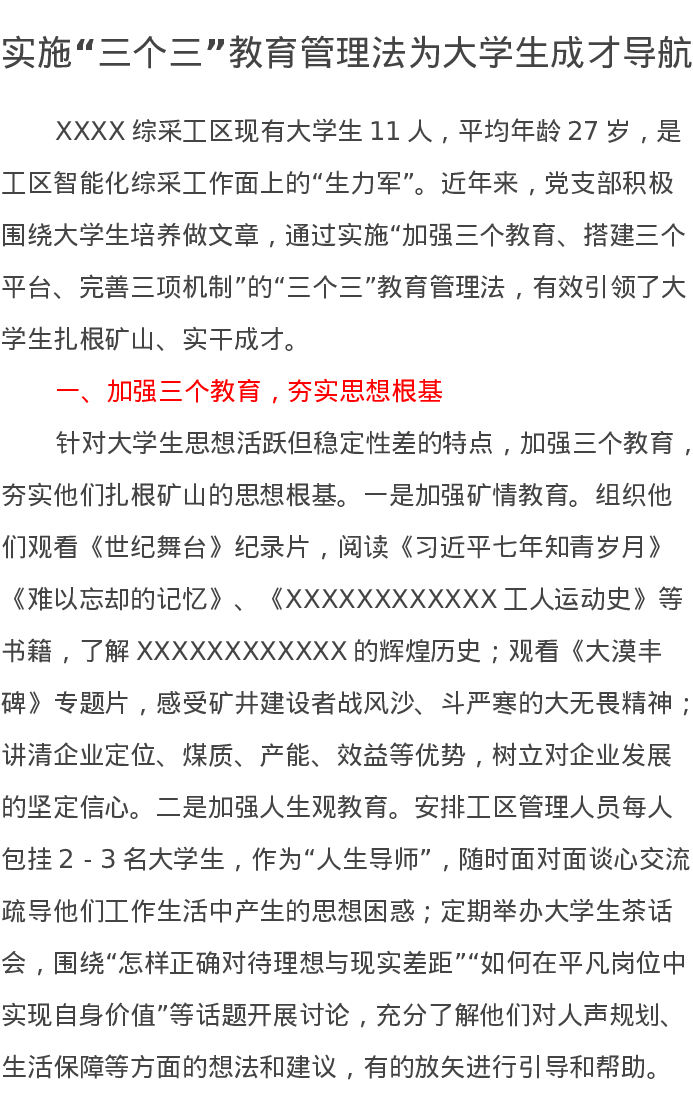 实施“三个三”教育管理法为大学生成才导航工作汇报
