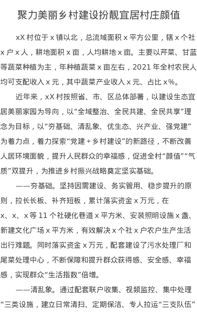 聚力美丽乡村建设扮靓宜居村庄颜值汇报
