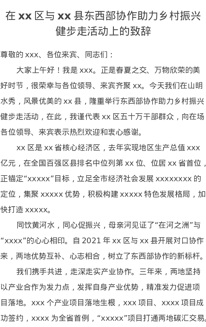 在xx区与xx县东西部协作助力乡村振兴健步走活动上的致辞