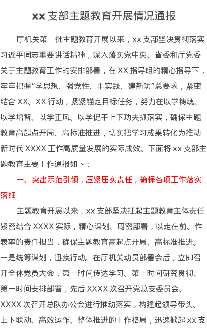 xx支部主题教育开展情况通报(特色社会主义思想)