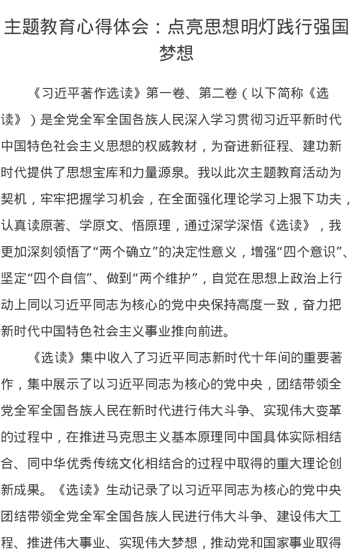 主题教育心得体会:点亮思想明灯践行强国梦想(特色社会主义思想)