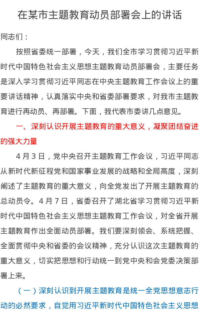 在某市主题教育动员部署会上的讲话(特色社会主义思想)