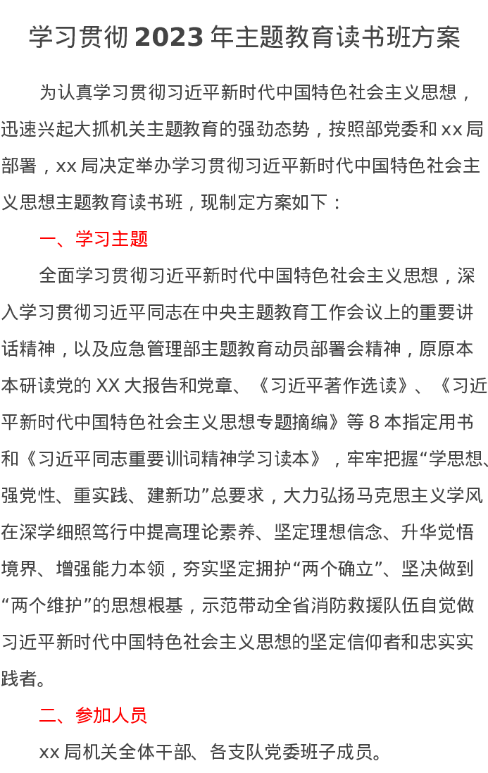 学习贯彻2023年主题教育读书班方案(特色社会主义思想)