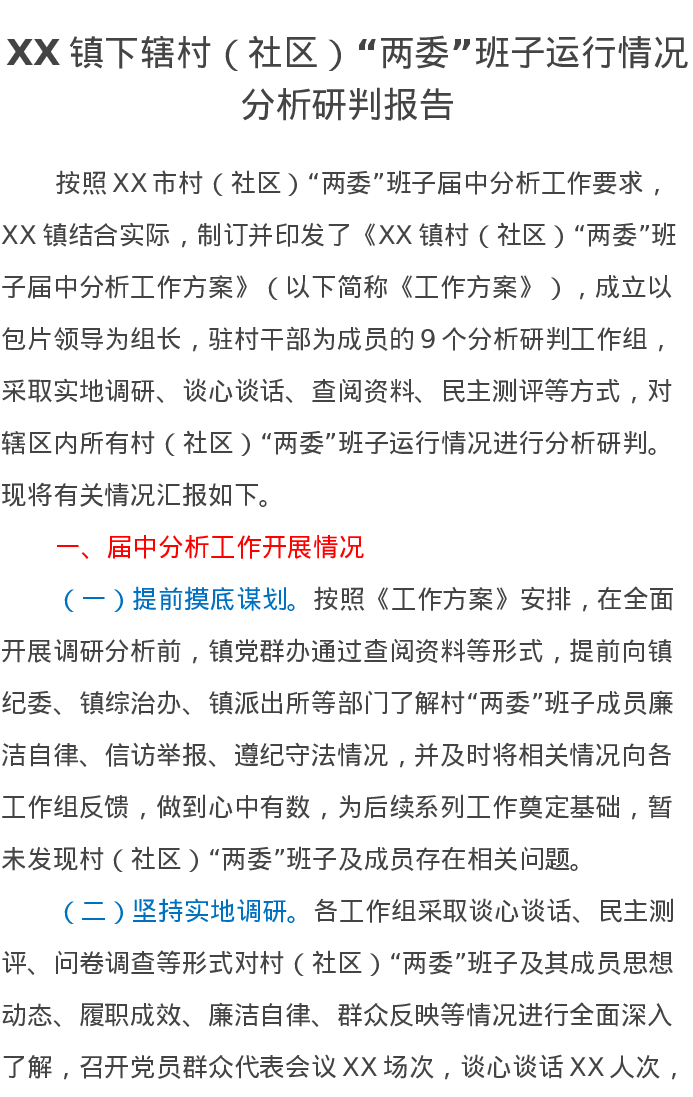 XX镇下辖村(社区)“两委”班子运行情况分析研判报告