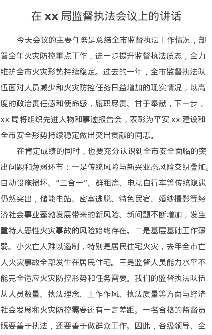 在xx局监督执法会议上的讲话