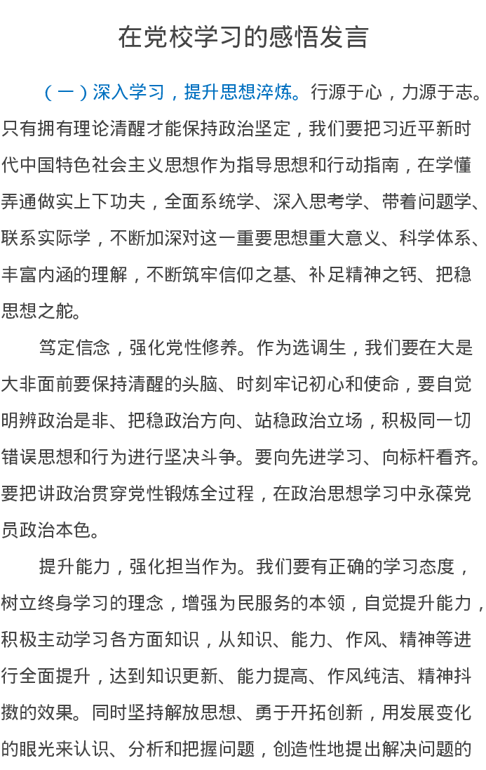 在党校学习的感悟发言心得体会2