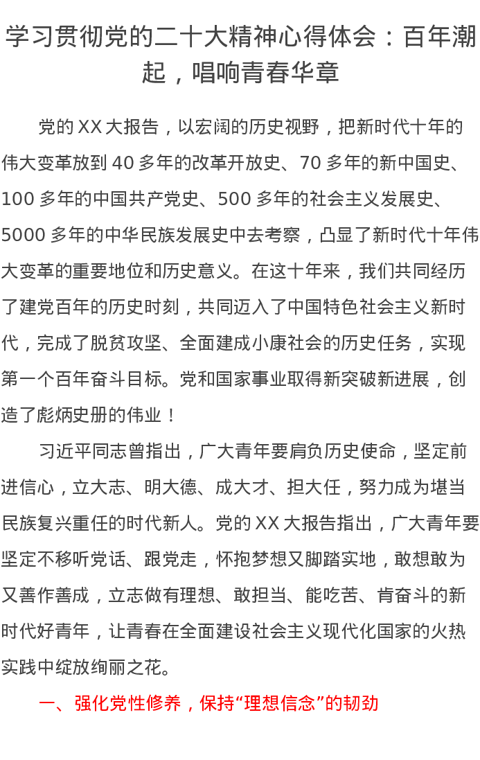 学习贯彻党的二十大精神心得体会:百年潮起,唱响青春华章