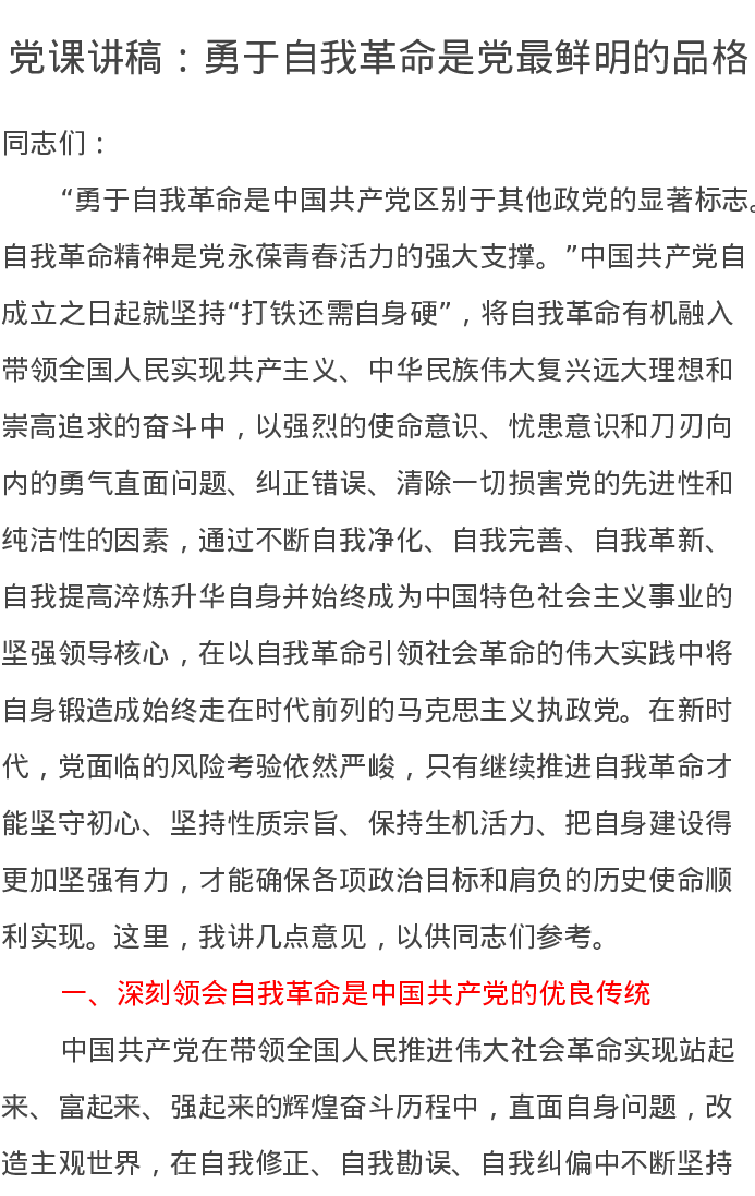 党课讲稿:勇于自我革命是党最鲜明的品格