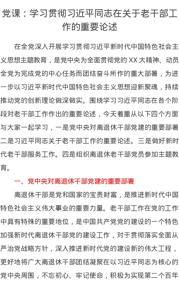 党课讲稿:学习贯彻习近平总书记在关于老干部工作的重要论述