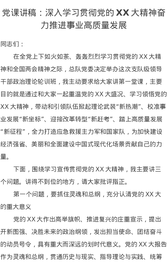 党课讲稿:深入学习贯彻党的二十大精神奋力推进事业高质量发展