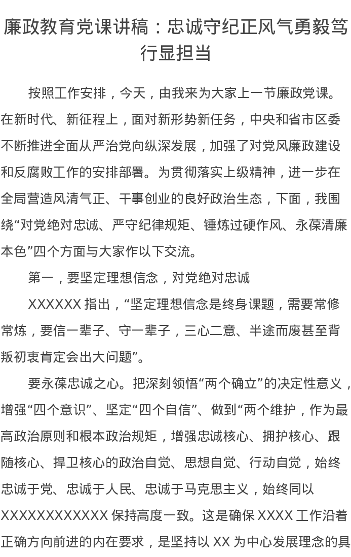 廉政教育党课讲稿:忠诚守纪正风气勇毅笃行显担当