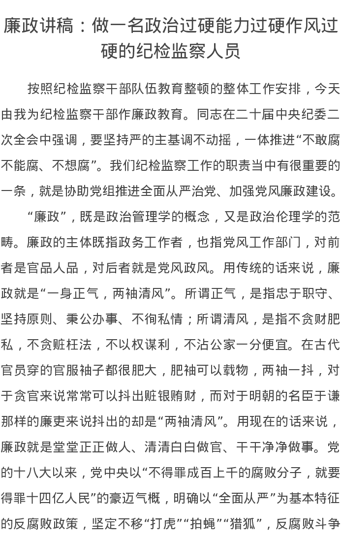 廉政讲稿:做一名政治过硬能力过硬作风过硬的纪检监察人员