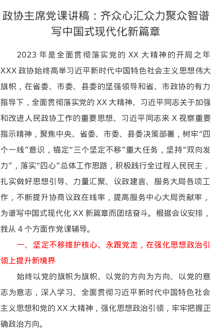 政协主席党课讲稿:齐众心汇众力聚众智 谱写中国式现代化新篇章