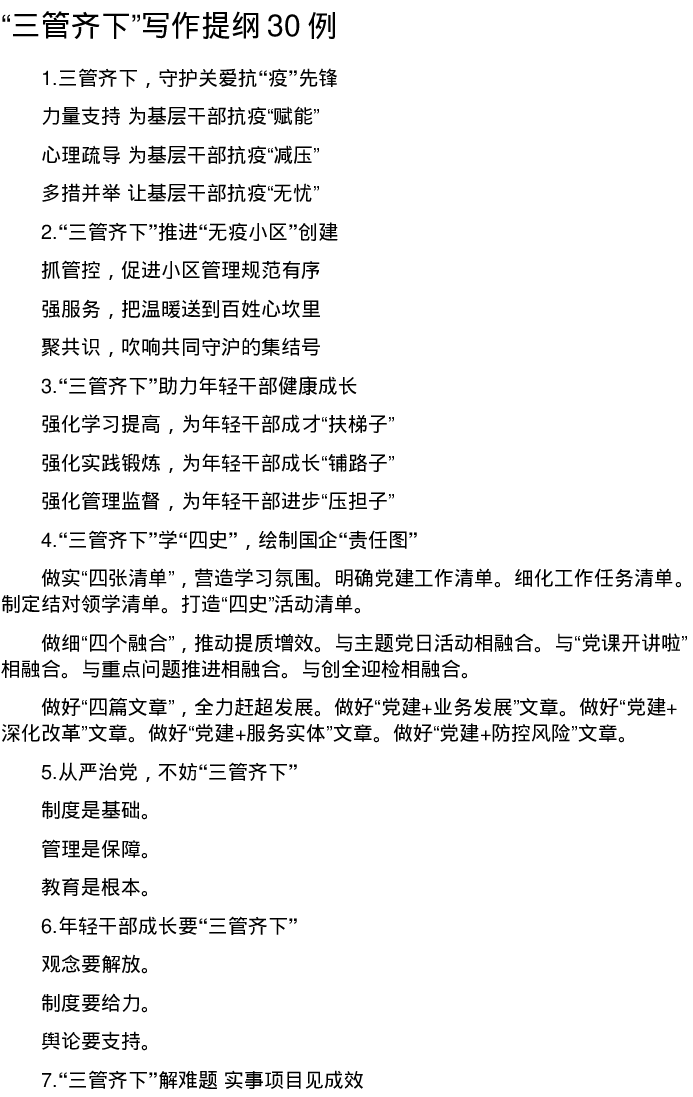 “三管齐下”写作提纲30例(2023年9月1日)