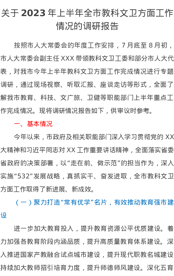 关于2023年上半年全市教科文卫方面工作情况的调研报告