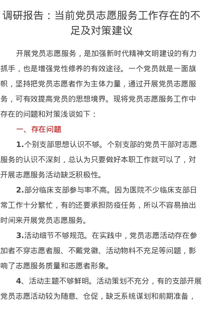 调研报告:当前党员志愿服务工作存在的不足及对策建议