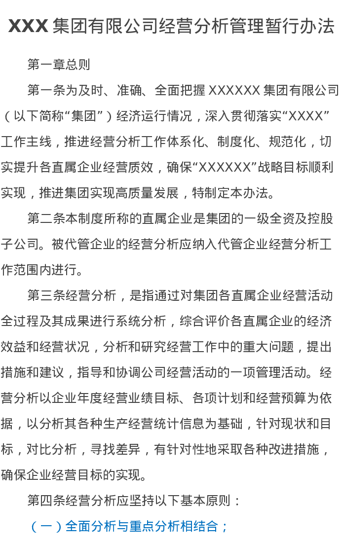 XXX集团有限公司经营分析管理暂行办法