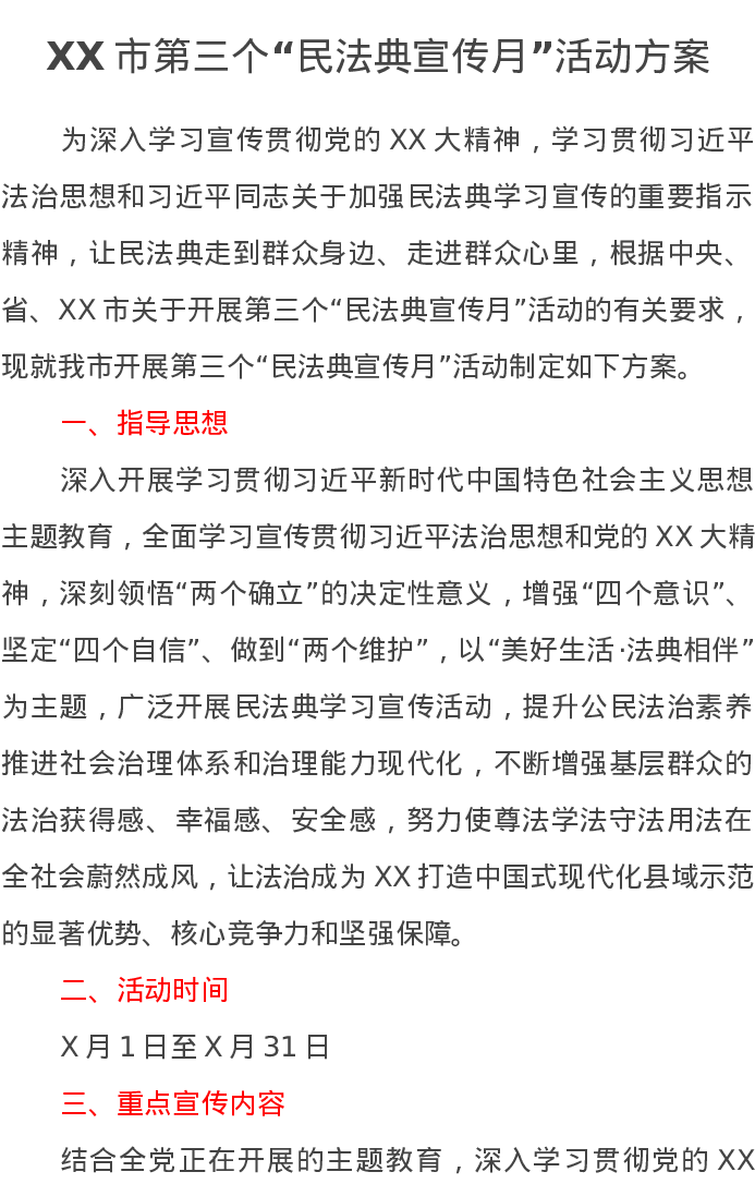 XX市第三个“民法典宣传月”活动方案