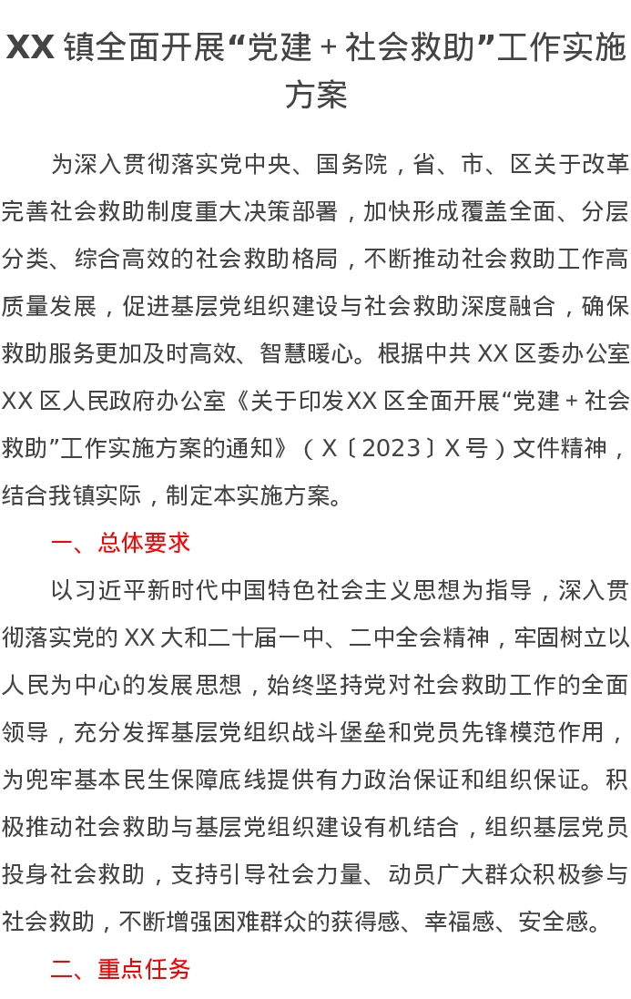 XX镇全面开展“党建+社会救助”工作实施方案