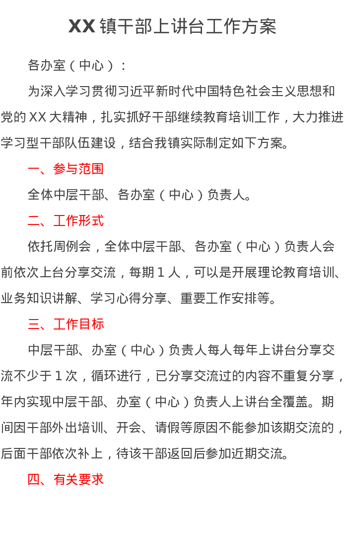 XX镇干部上讲台工作方案