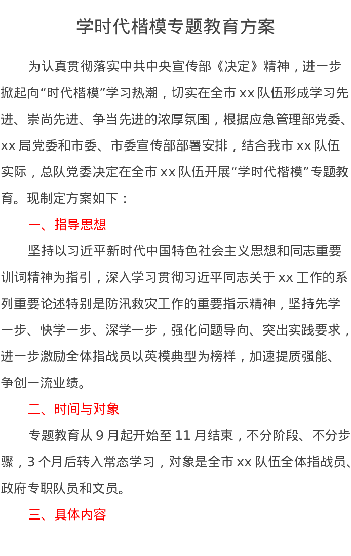 学时代楷模专题教育方案