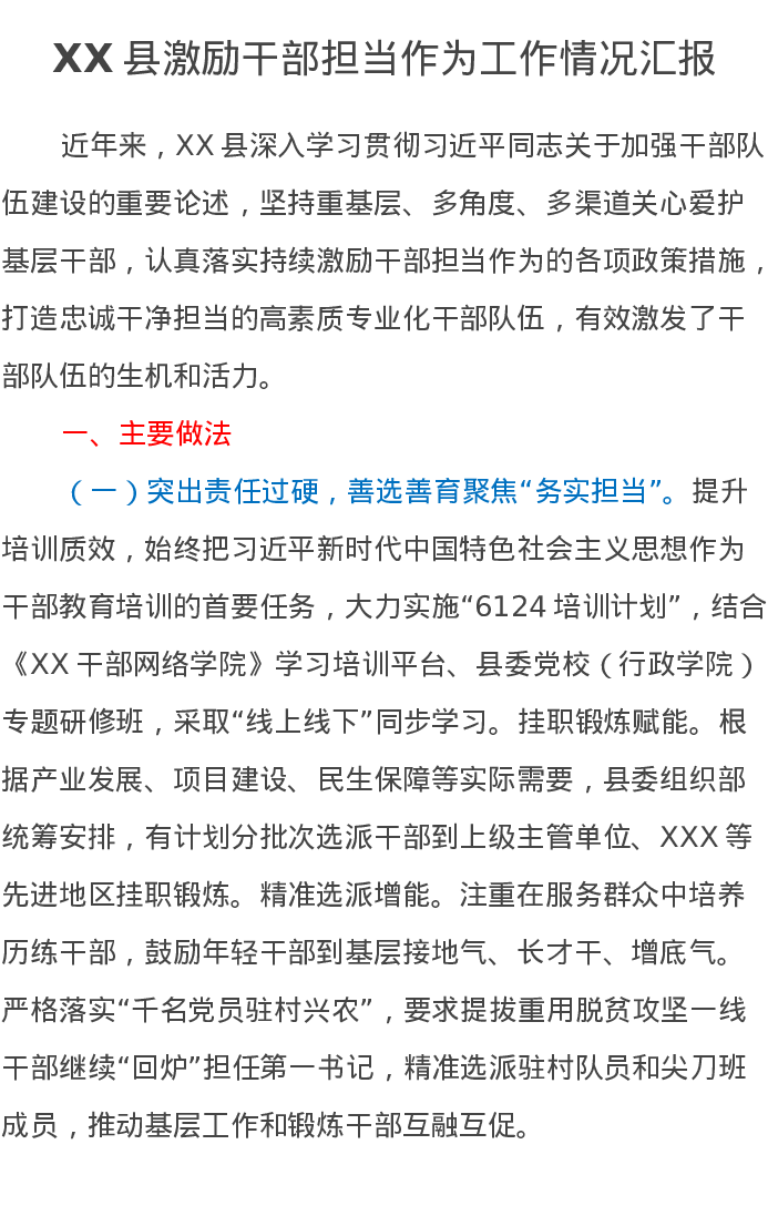 XX县激励干部担当作为工作情况汇报