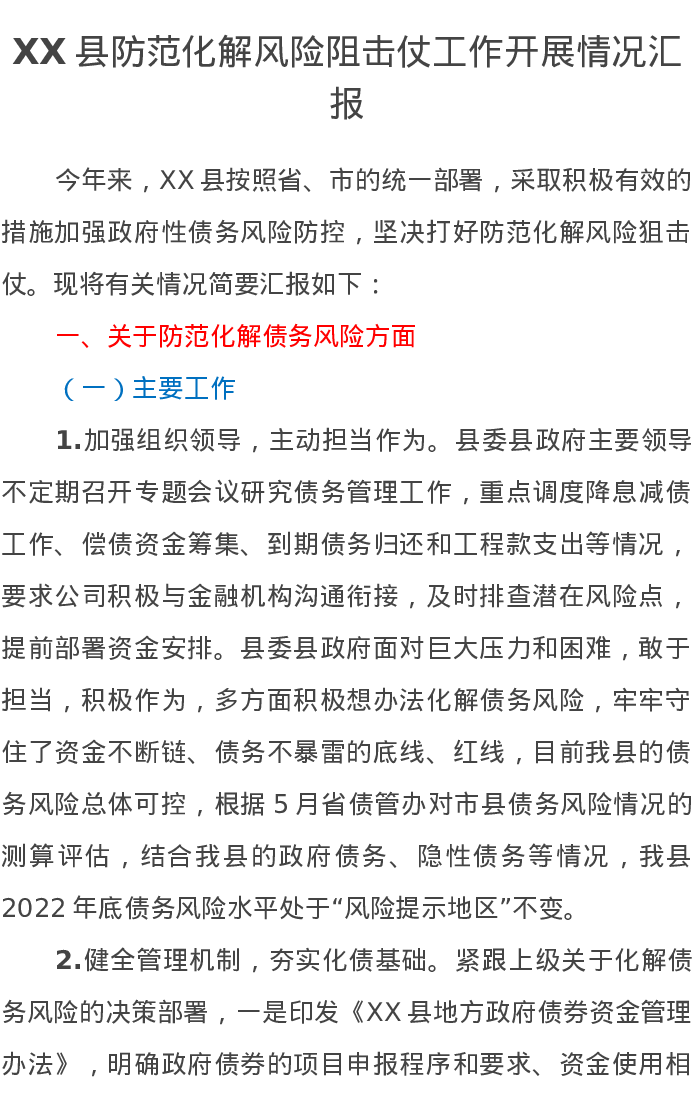 XX县防范化解风险阻击仗工作开展情况汇报