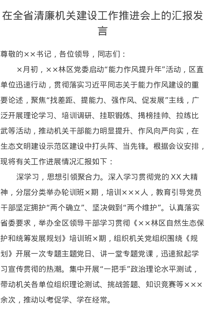 在全省清廉机关建设工作推进会上的汇报发言