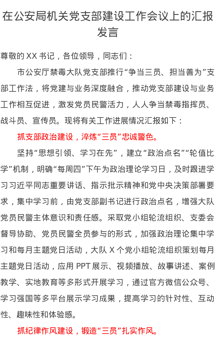 在公安局机关党支部建设工作会议上的汇报发言