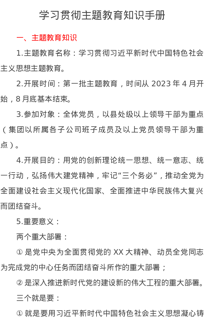 学习贯彻主题教育知识手册(特色社会主义思想)