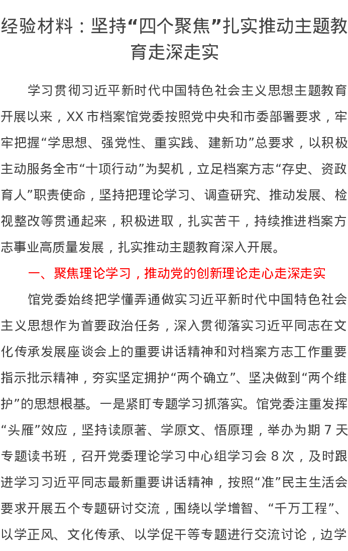 经验材料:坚持“四个聚焦”扎实推动主题教育走深走实